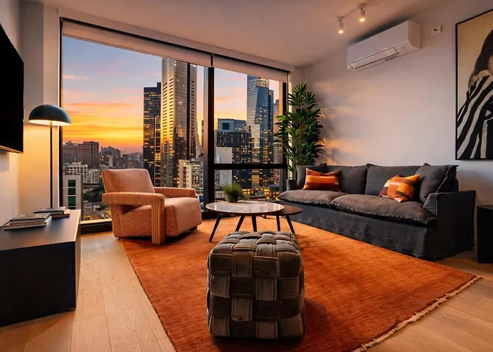 Die Ferienwohnung Modern Nostalgia Vintage Cool Meets Modern Luxury Melbourne City liegt in einer Entfernung von 18 Minuten zu Fuß vom Australian Centre for the Moving Image und in ca. 4 km Entfernung von einem familienfreundlichen Ort wie dem Luna Park. In diesem Apartment können die Gäste an einem Swimmingpool entspannen oder das Crown Melbourne, in 350 Metern von hier entfernt, besuchen.